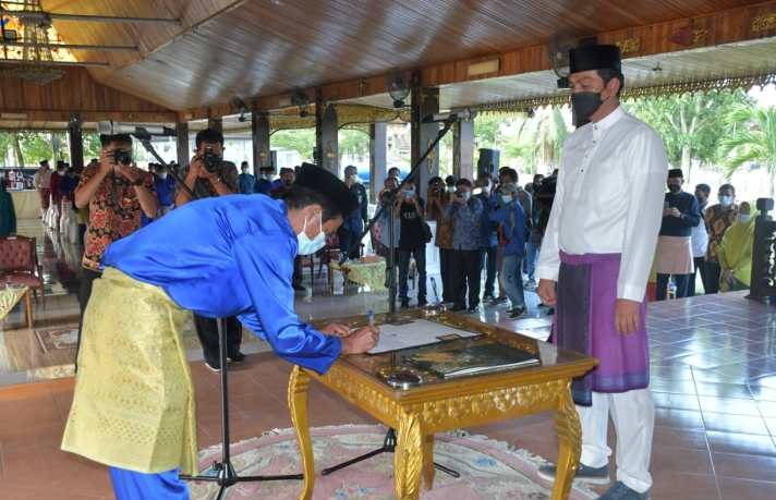 EXPOSSE.COMI BATANGHARI – Bupati Batanghari, Jambi, Muhammad Fadhil Arief (MFA) resmi melantik Sekretaris daerah (Sekda) definitif, Kamis 3 Juni 2021. Prosesi berlangsung di Pendopo Rumah Dinas Bupati disaksikan Wakil Bupati Bakhtiar, Forkopimda serta sejumlah Kepala Organisasi Perangkat Daerah (OPD).