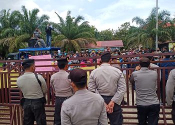 EXPOSSE.COMI SAROLANGUN - Ratusan warga dari desa Lubuk Badorong Kecamatan Limun Kabupaten Sarolangun, berunjukrasa di depan Kantor Polres Sarolangun, Selasa...