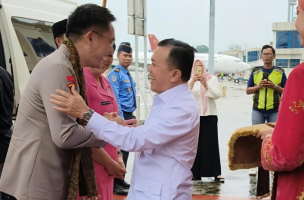 EXPOSSE.COMIJAMBI– Gubernur Jambi Al Haris secara langsung menyambut kedatangan Kapolda Jambi yang baru, Irjen Pol Krisno Halomoan Siregar, di Bandar Udara Sultan Thaha Saifuddin, Rabu (19/03/2025).