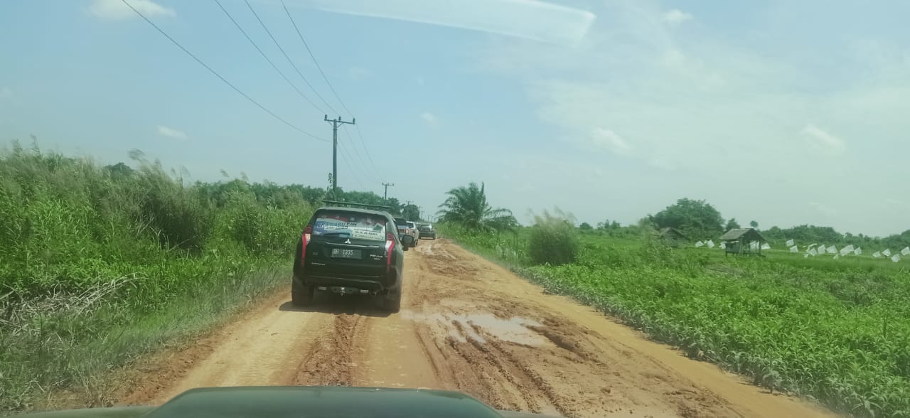 Kondisi jalan banyak lubang dan juga berdebu membuat jadwal silaturrahmi Haris dengan warga jadi molor.