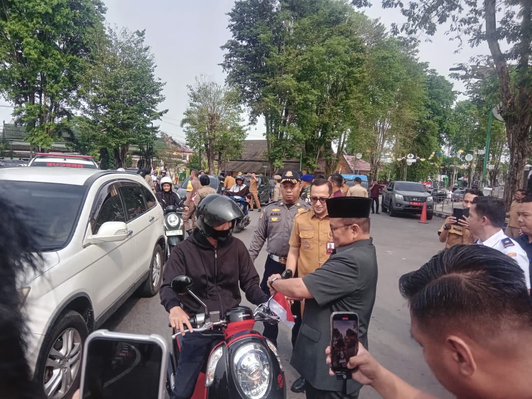 Penyerahan bendera dilakukan secara simbolis oleh Wali Kota Jambi kepada para camat. Setelah itu, bendera akan didistribusikan ke seluruh kecamatan untuk dibagikan langsung kepada warga yang sedang berkendara.