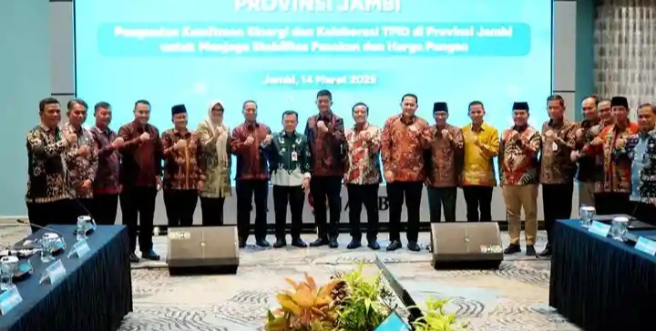 Pertemuan tingkat tinggi tersebut digelar sebagai bentuk penguatan komitmen sinergi dan kolaborasi TPID dalam menjaga stabilitas pasokan serta harga pangan di tengah masyarakat, terutama menjelang Hari Raya Idul Fitri 1446 H/2025 M. Gubernur Jambi menegaskan pentingnya menjaga kestabilan harga kebutuhan pokok dan kelancaran distribusi selama Ramadhan.